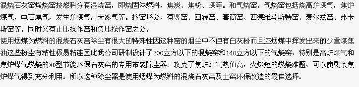 混燒石灰窯煅燒窯按燃料分有混燒窯,即燒固體燃料,焦炭、焦粉、煤等。和氣燒窯。氣燒窯包括燒高爐煤氣,焦?fàn)t煤氣,電石尾氣,發(fā)生爐煤氣,天然氣等。